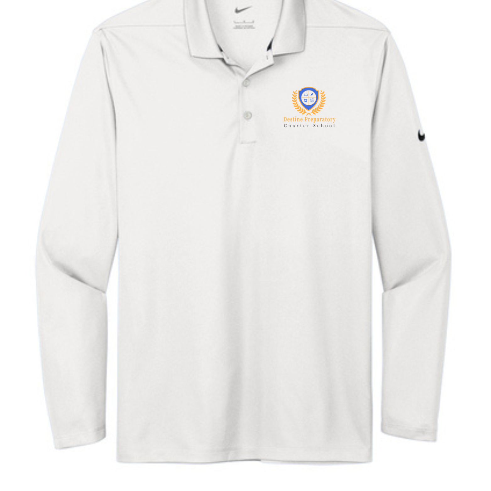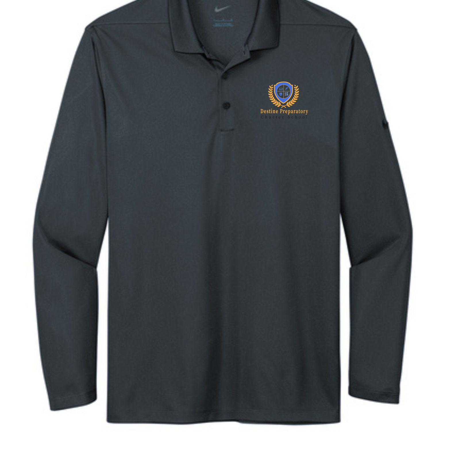 Nike Men's Dri-Fit Micro Pique 2.0 Long Sleeve Polo with the Destine Prepatory Charter School embroidered on the left front chest.