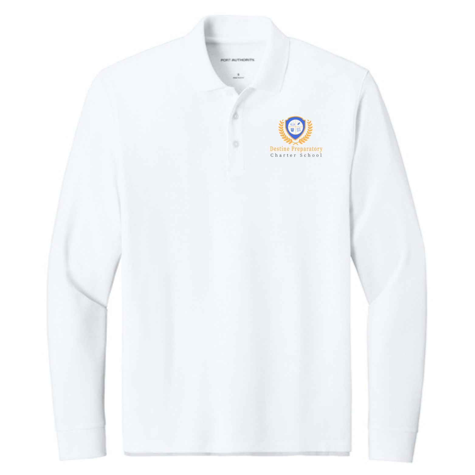 Port Authority Men's Wearever Signature Pique Long Sleeve Polo with the Destine Prepatory Charter School logo embroidered on the front left chest.