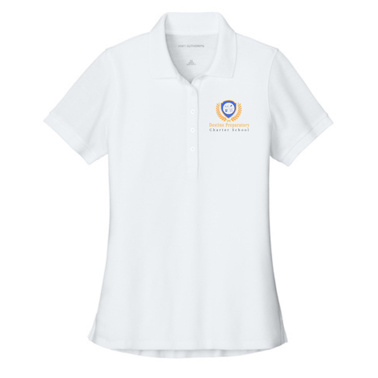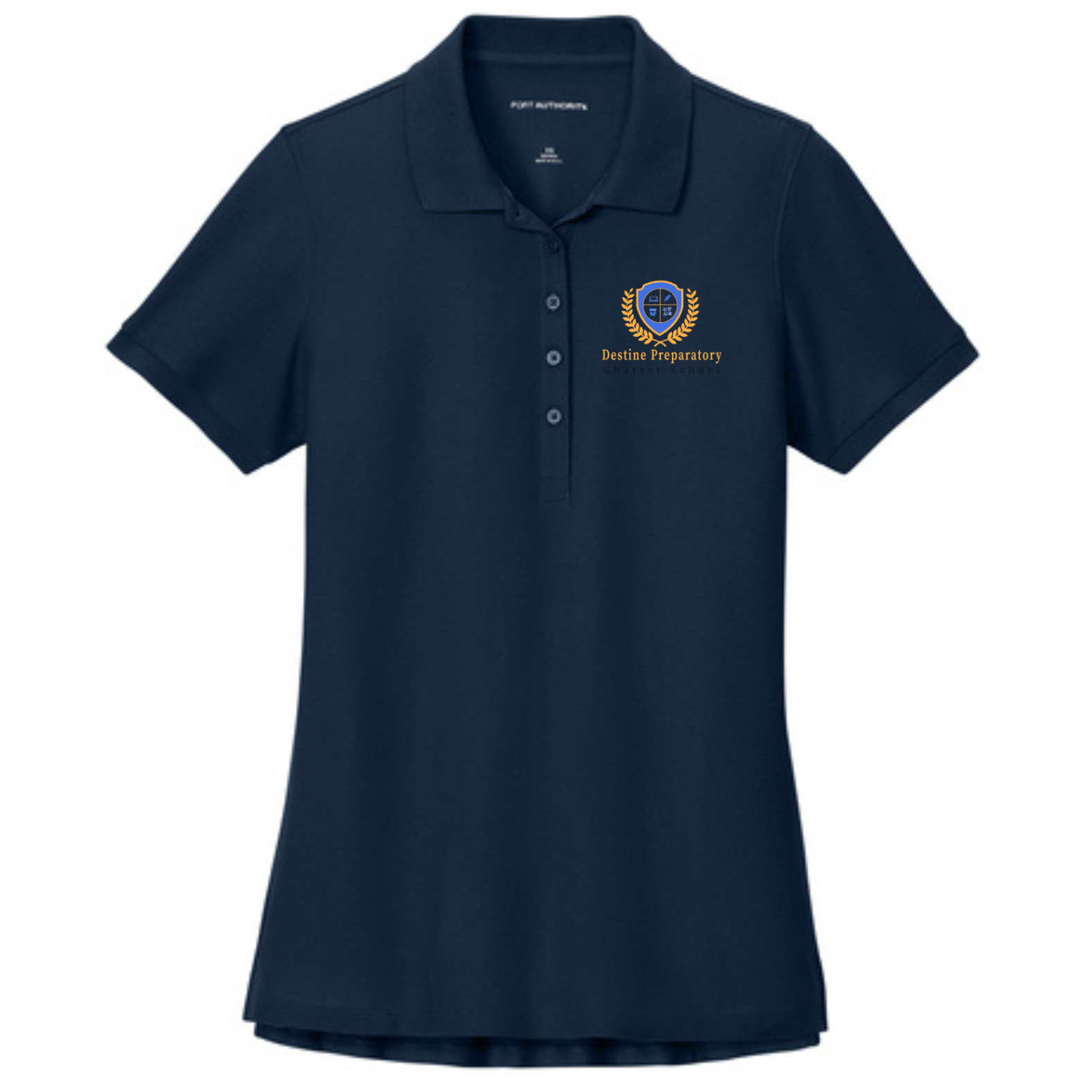 Port Authority Women's Wearever Signature Pique Short Sleeve Polo Shirt with the Destine Prepatory Charter School logo embroidered on the front left chest.
